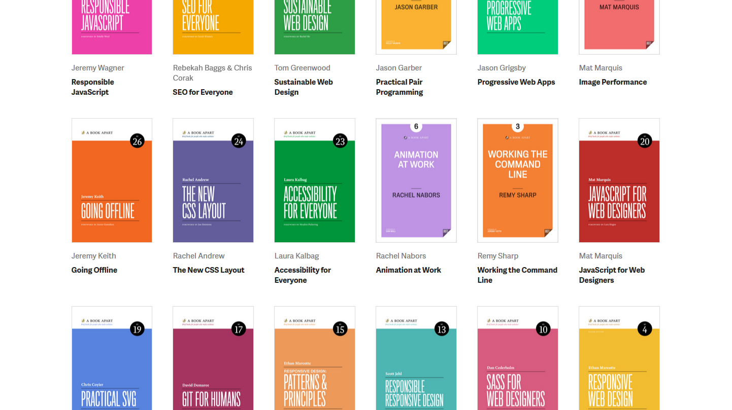 Great reads!! Brief books for designing, writing, and coding. Great for web professionals. Front-end focused topics.
