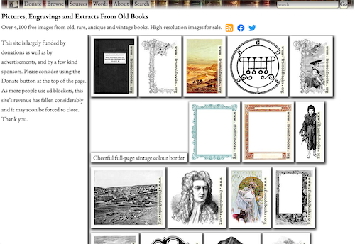 Canadian web archive of beautiful art from old books scanned by Liam. Published dates are listed.